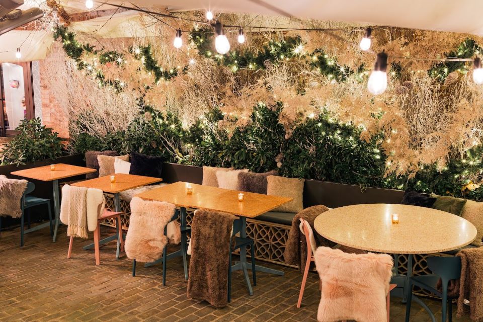 Settle in for cosy catchups at the Black Ruby Terrace at Drake & Morgan Kingโs Cross, a heated winter