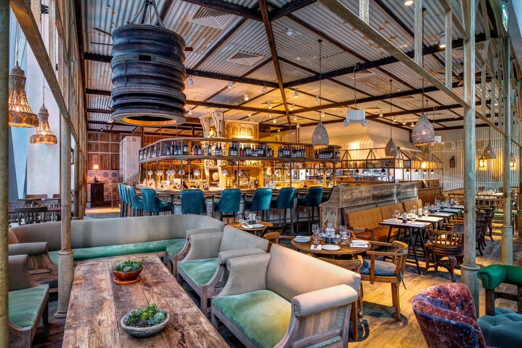 Inside, the venue is just as interesting as its food offering. It features Colonial era details and custom-made furniture that sports concrete and 21st Century sheer glass. The open-plan layout welcomes guests, while the ground floor is dominated by a circular bar where cocktail and wine enthusiasts can sample some exciting concoctions.